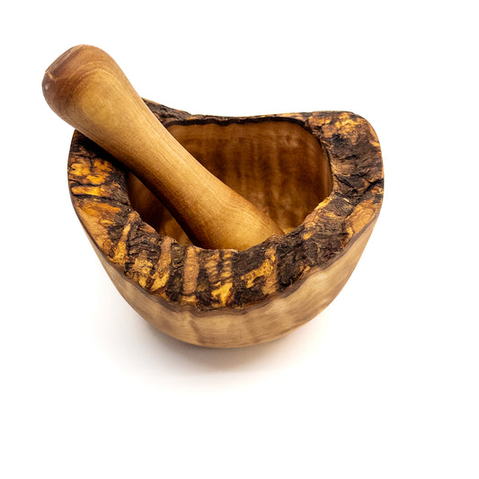 Qartaj Olivewood Bark Edge Mortar and Pestle